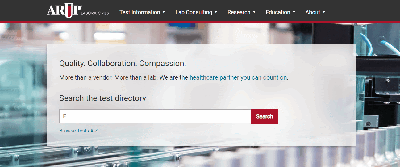 ARUP Laboratories is a medical diagnostics laboratory affiliated with University of Utah and provides reference lab services. The company’s website had inconsistent UX and confusing navigation that hindered sales and marketing efforts.